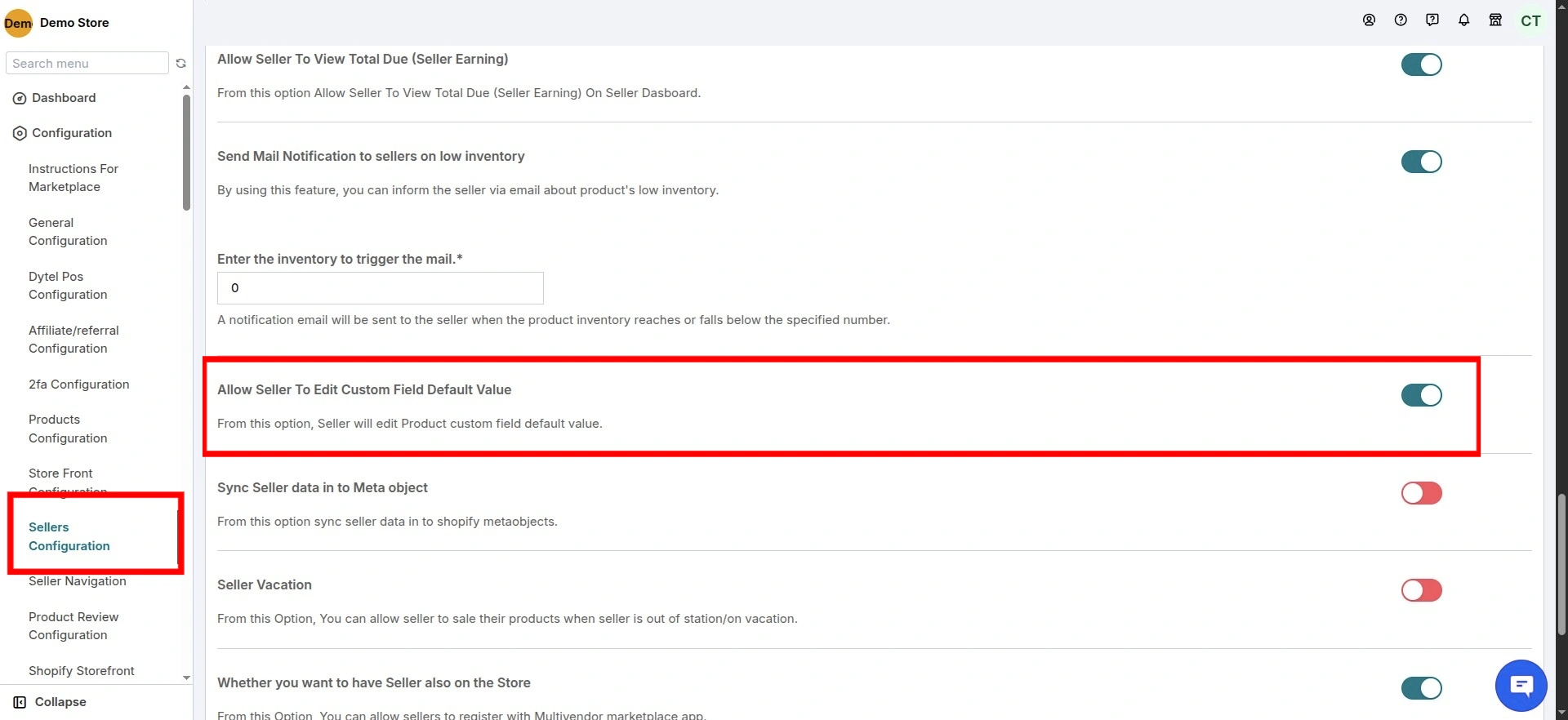 - Enable the option: “Allow Seller to Edit Custom Field Default Value.”