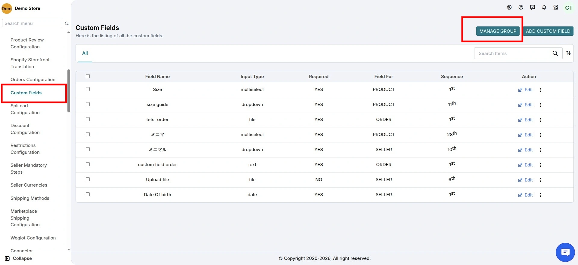 Custom Fields for Seller